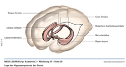 Lage des Hippocampus und des Fornix