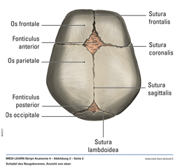 Schädel des Neugeborenen, Ansicht von oben