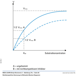 Nichtkompetitive Hemmung im Michaelis-Menten-Diagramm