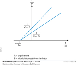 Nichtkompetitive Hemmung im Lineweaver-Burk-Diagramm