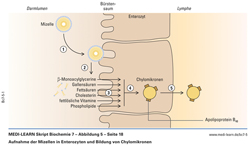 Aufnahme der Mizellen in Enterozyten und Bildung von Chylomikronen