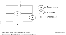 Stromkreis mit Spannungsquelle, Widerstand und Messgeräten