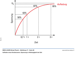 Aufladen eines Kondensators: Spannung in Abhängigkeit der Zeit
