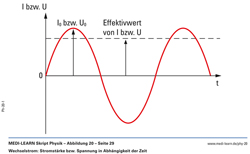Wechselstrom: Stromstärke bzw. Spannung in Abhängigkeit der Zeit