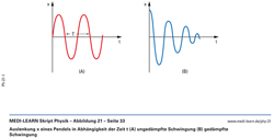 Auslenkung x eines Pendels in Abhängigkeit der Zeit t (A) ungedämpfte Schwingung (B) gedämpfte Schwingung