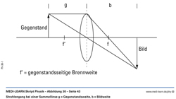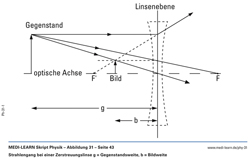 Strahlengang bei einer Sammellinse g = Gegenstandsweite, b = Bildweite