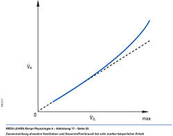 Zusammenhang alveoläre Ventilation und Sauerstoffverbrauch bei sehr starker körperlicher Arbeit