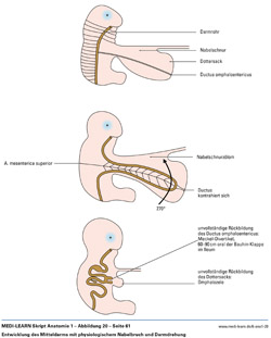 Entwicklung des Mitteldarms mit physiologischem Nabelbruch und Darmdrehung