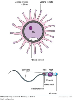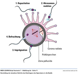 Darstellung der einzelnen Schritte des Eindringens des Spermiums in die Eizelle