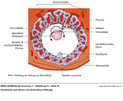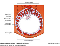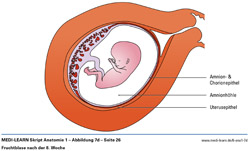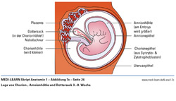Lage von Chorion-, Amnionhöhle und Dottersack 3.–8. Woche