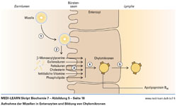 Aufnahme der Mizellen in Enterozyten und Bildung von Chylomikronen