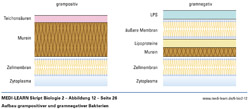 Aufbau grampositiver und gramnegativer Bakterien