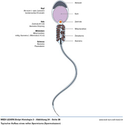 Typischer Aufbau eines reifen Spermiums (Spermatozoon)