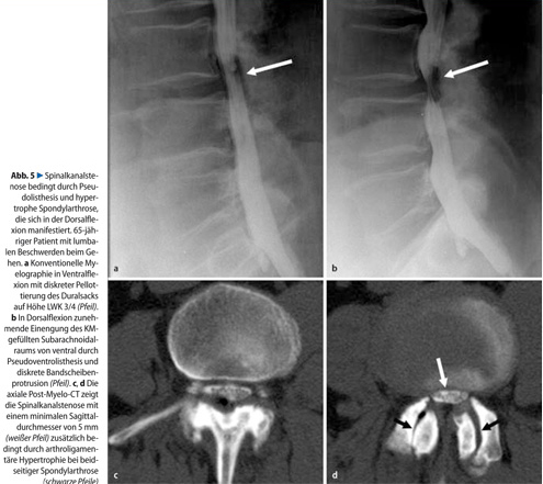 Eine Operationsindikation besteht bei primären oder metastatischen Tumoren der Wirbelsäule meist, wenn eine spinale oder radikuläre Kompression oder eine drohende bzw. manifeste Instabilität radiologisch bestätigt werden. Eine Häufigkeitsverteilung von Rückenmarkstumorenn ach anatomischer Lokalisation gibt (s. Tab. 4.) Im Falle neoplastischer Veränderungen können mit der CR direkte Veränderungenwie Osteolysen und gemischt osteolytisch-osteoblastische Tumoren nachgewiesen werden. Die MDCT ist Standardverfahren in der Beurteilung der knöchernen Strukturen. Die MRT ist die einzige Methode zur direkten Beurteilung des Myelons und der Nervenwurzeln.